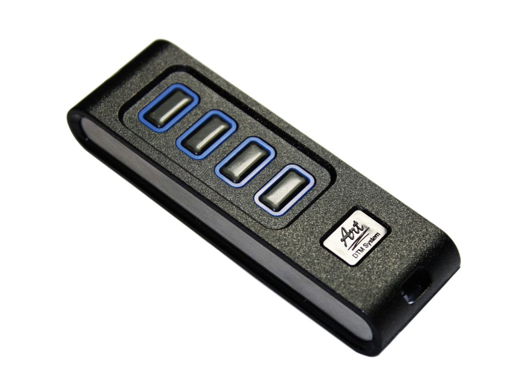 ART to umiejętnie wypracowany pilot, poszukujący w każdym elemencie elegancji i praktyczności. Obudowa z metalowymi elementami ozdobnymi, wysoka jakość wykonania i dobre parametry radiowe dają gwarancję satysfakcji w użytkowaniu. Pilot posiada 4 przyciski mogące sterować odbiornikami radiowymi, sterownikami bram i innymi urządzeniami systemu DTM433MHz.