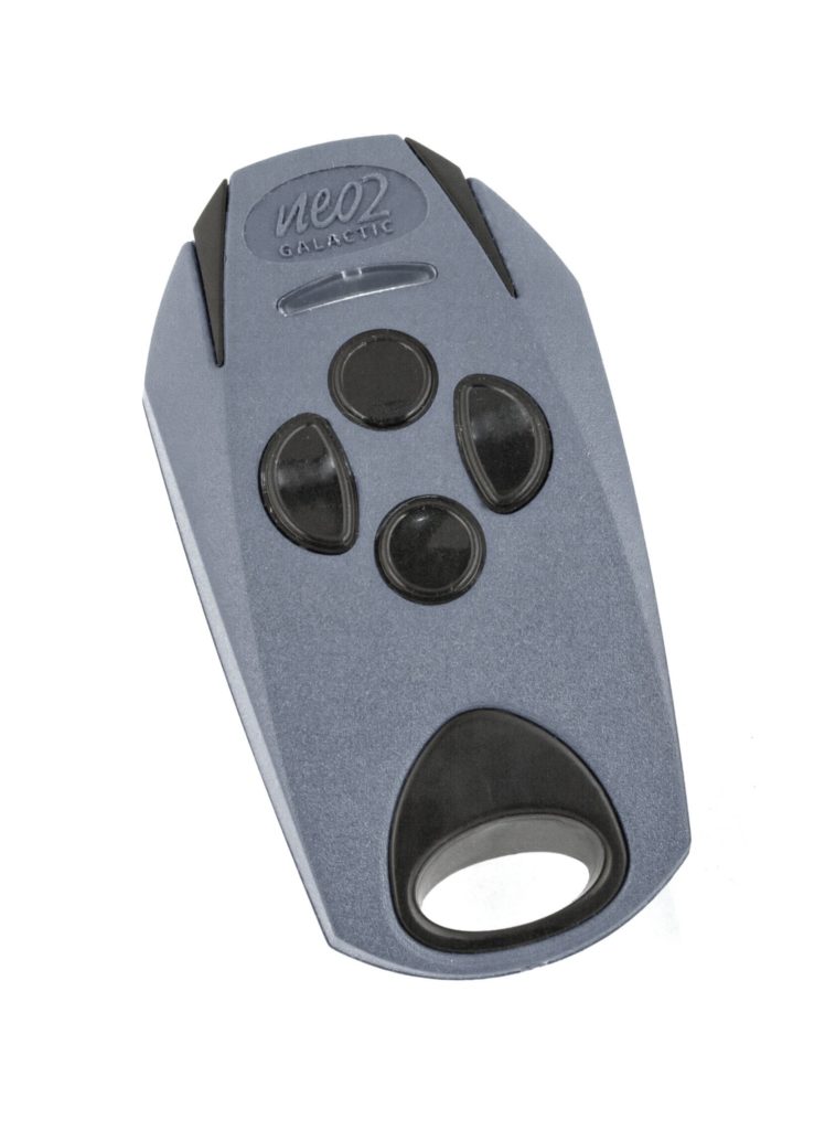 NEO 2 GALACTIC jest pilotem, którego jakość wykonania oraz nowoczesne i innowacyjne rozwiązania techniczne dają poczucie komfortu i bezpieczeństwa. Wyposażony jest w funkcję Galactic umożliwiającą zaprogramowanie i skonfigurowanie pilota poza instalacją. Posiada cztery przyciski, mogące sterować odbiornikami radiowymi, sterownikami bram i innymi urządzeniami systemu DTM868MHz.